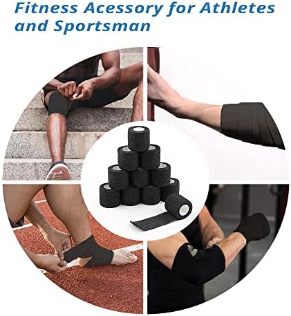 12 Pack 2 inch * 5 Yards Black Color Self Adhesive Bandage wrap Breathable Self Adherent wrap Cohesive and Elastic Bandage for Sports, First Aid, Wrist and Ankle (Black)