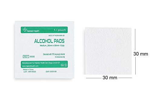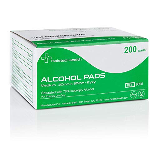 200ct Alcohol Prep Pads 30x30mm 2-Ply, Individually Wrapped, Medical Grade 70% Isopropyl, Latex Free. Disposable Antiseptic from Halsted Health. Ideal for Hospital, Clinic, Home Disinfecting