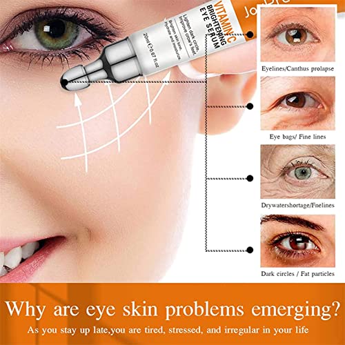 2023 New JoyPretty Vitamin C Brightening Eye Serum, Anti Aging Serum with Vitamin C, Niacinamide and Hyaluronic Acid, Remove for Dark Circles Puffiness Under Eye Bags Fine Line Crow’s Feet (3 PCS)
