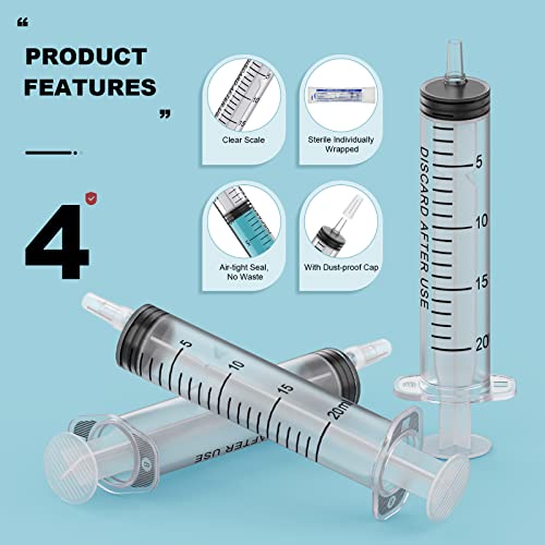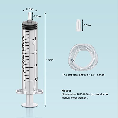 Package Includes: You will receive 30 pcs 20ml/cc plastic syringes, Each sterile individually packaged syringe comes with a tip cap. In addition, you will also receive 10 extra tip caps and 2 pcs 11.81inch(30cm) soft tube, enough for use or replacement.