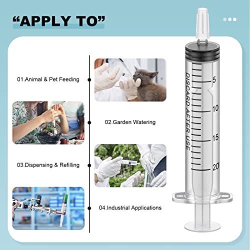 30Pack 20ml Plastic Syringe Sterile Individual Wrap with Tip Cap&Soft Tube, Measurement and Dispensing Syringe Tools for Science Labs,Liquid Measuring,Feeding Pets,Oil or Glue Applicator (20ml, 30)