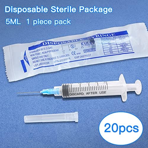 5ML Disposable syringe with Needle, Individually Wrapped (23Ga 25mm/1.0inch, Pack of 20)