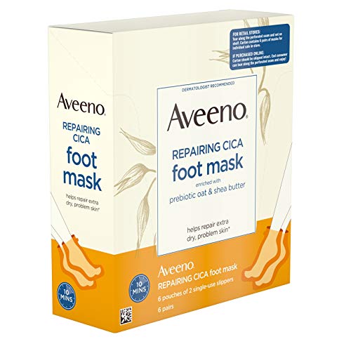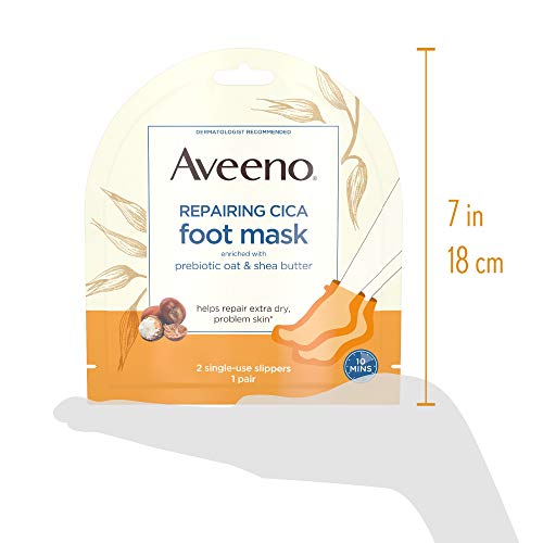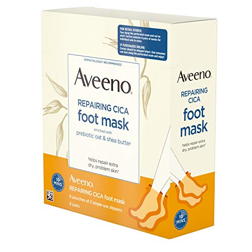 Aveeno Repairing CICA Foot Mask with Prebiotic Oat and Shea Butter, Moisturizing Foot Mask for Extra Dry Skin, 6 Pairs of Single-Use Slippers