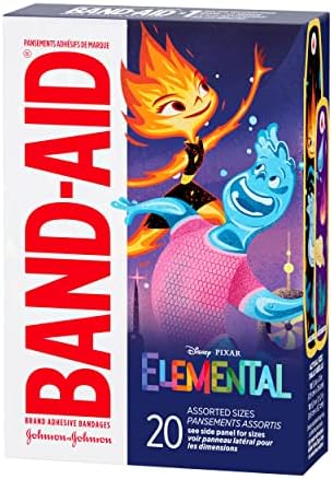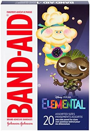 Band-Aid Brand Adhesive Bandages for Minor Cuts & Scrapes, Wound Care Featuring Disney’s Elemental Characters, Fun Bandages for Kids and Toddlers, Assorted Sizes, 20 Count