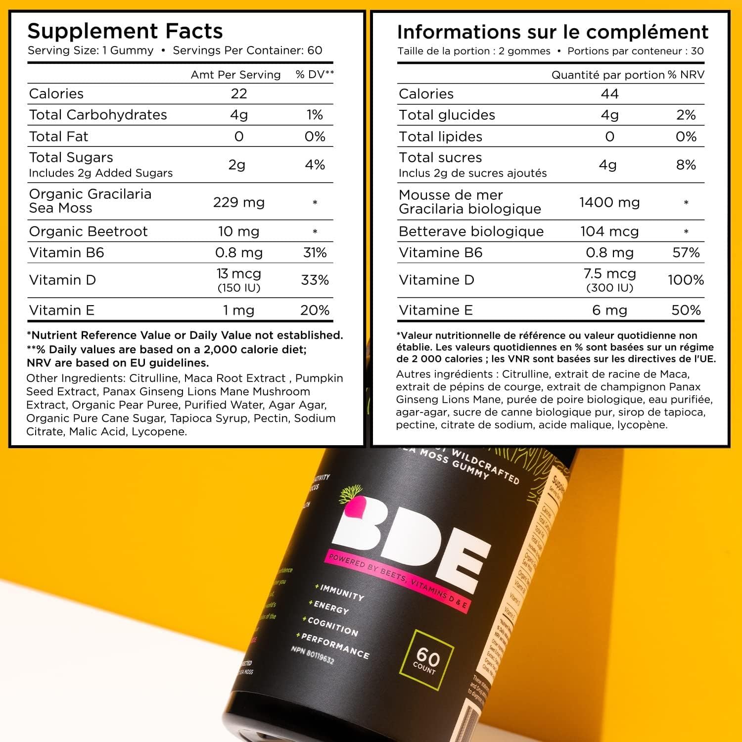 BDE gummy sea moss maca root lions mane vegan beets ginsengBDE gummy sea moss maca root lions mane vegan beets ginseng