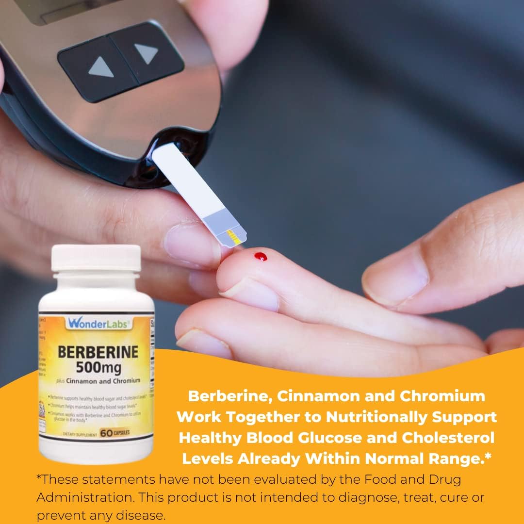 Berberine HCL 500mg + Cinnamon & Chromium Maintenance for Glucose, Metabolism, Heart & Immune System Health Gluten & GMO Free – 60 Capsules