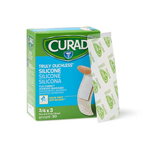 Curad Truly Ouchless Silicone Adhesive Bandages, Fabric Bandages, For Delicate Sensitive Skin, 3/4X3 (50 Count)