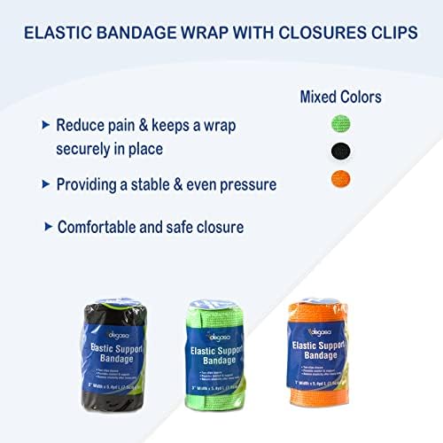 Degasa Elastic Bandage wrap with Closures Clips, 1 Pack, Random Color, Comfortable Design, Support for Ankle, Knee Claves Wrist arm Leg sprains First Aid Compression Roll 3” W x 5.4 yds L