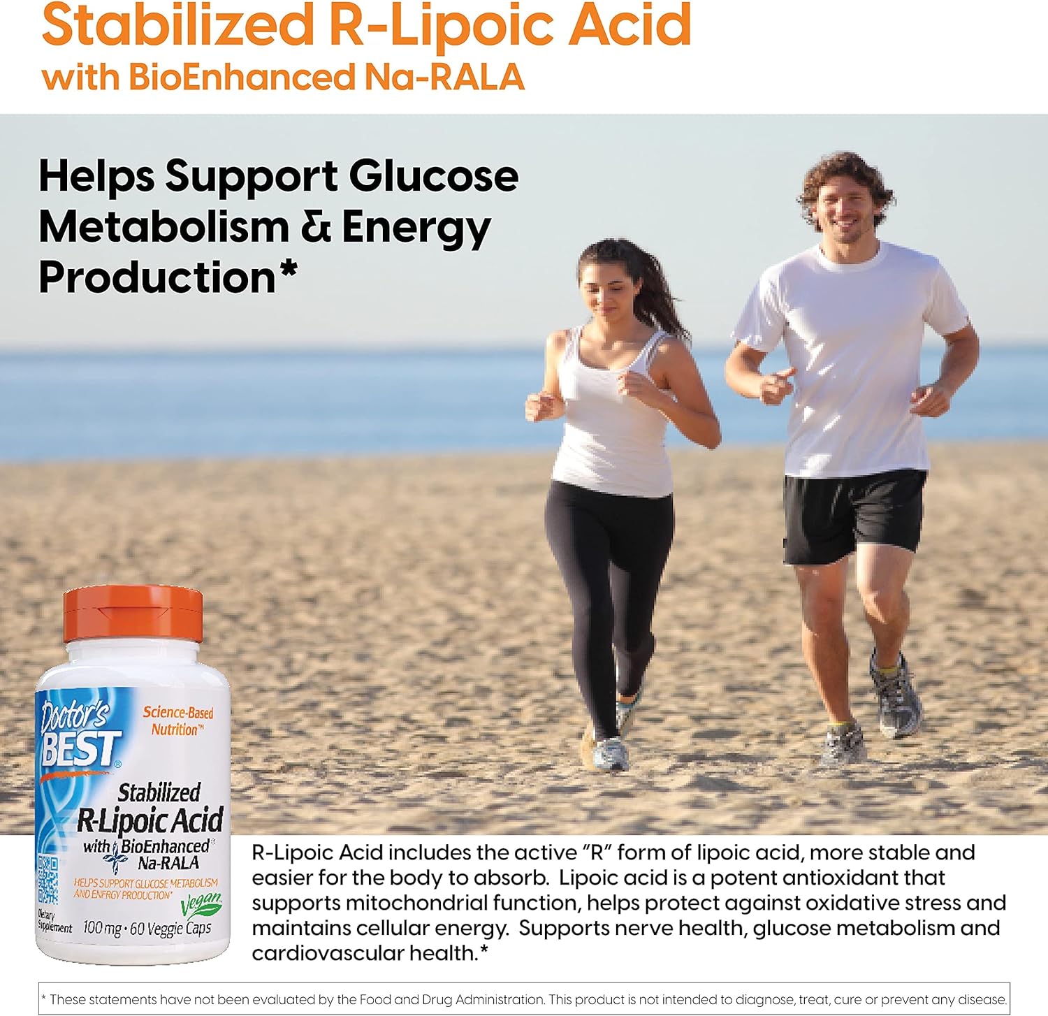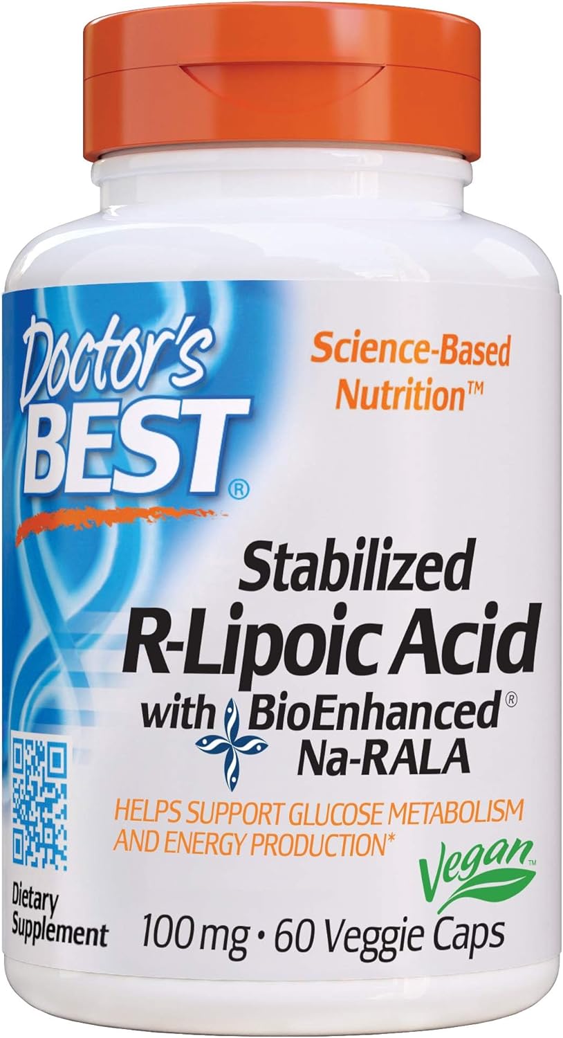 Doctor’s Best Stabilized R-Lipoic Acid with BioEnhanced Na-RALA, Helps Support Glucose Metabolism and Energy Production* Non-GMO, Gluten Free, Vegan, 100 mg, 60 Count