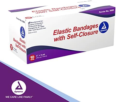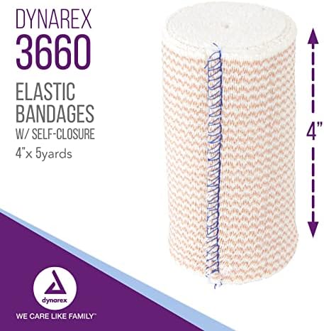Dynarex Elastic Bandages with Self-Closure, 4″ x 5 yds, Provides Compression for Injuries, Made from Polyester, Cotton, and Spandex, Non-Sterile and Latex-Free, 10 Rolls of Dynarex Elastic Bandages