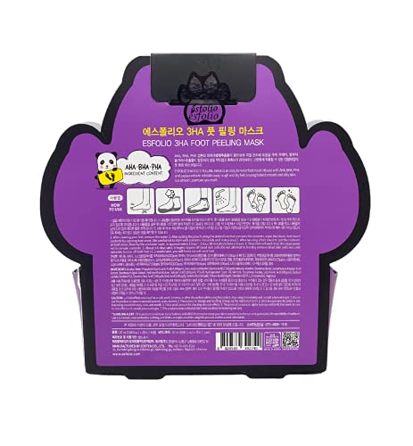 ESFOLIO 3HA FOOT PEELING MASK is an easy to wear foot mask infused with AHA, BHA, PHA and papaya extract to exfoliate away rough and dry feet, leaving behind smooth and silky skin.