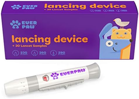 EverPaw Lancing Device Starter Kit + 30 Lancets for Diabetes Testing | Adjustable Lancing Device for Dogs and Cats| 30 Blood Glucose Lancets (10) 23g, (10) 26g and (10) 28g Lancets for Pets