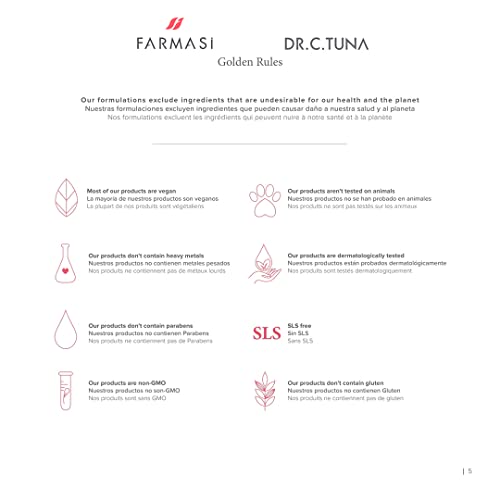[ DR. C. TUNA GOLDEN RULES ] Our formulations exclude ingredients that are undesirable for our health and the planet. We use vegan-friendly raw materials and actives in all products. Our products aren’t tested on animals, don’t contain heavy metals, dermatologically tested, don’t contain parabens, SLS free, non-GMO and don’t contain gluten.