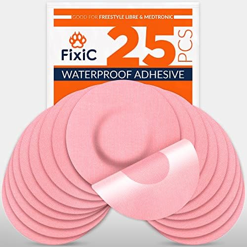 Fixic Freestyle Adhesive Patch 25 PCS – Good for Libre 1, 2, 3 – Enlite – Guardian – NO Glue in The Center of The Patch – Pre-Cut Back Paper – Long Fixation for Your Sensor! (Pink)