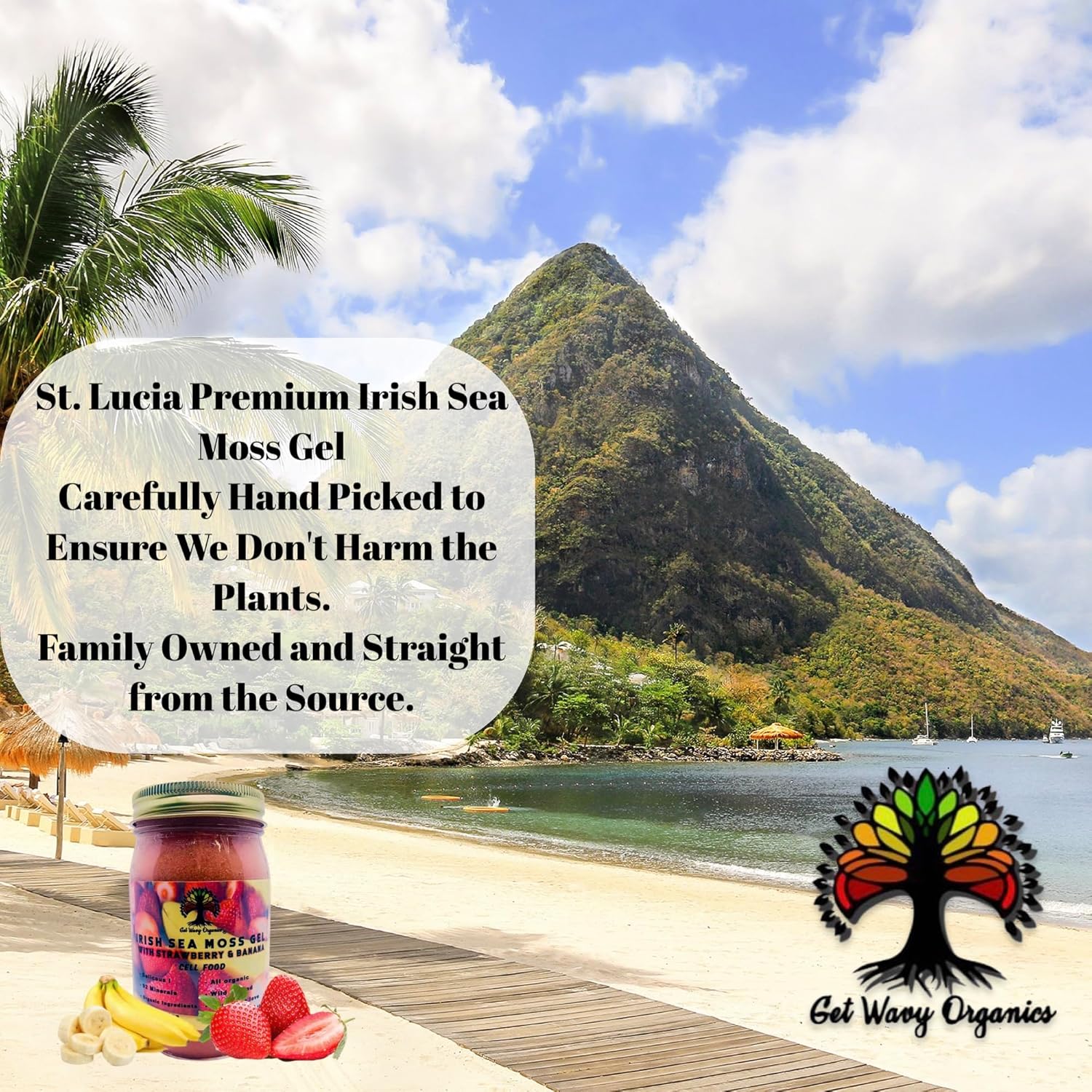 GET WAVY ORGANICS Organic Irish Sea Moss Gel 100% Wildcrafted Infused with Strawberry & Banana Vegan Super Cell Food Rich in Vitamins A, B, C, D, E (16 oz)