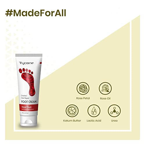 Grah Trycone Crack Heel Repair Foot Cream Velvet Touch with Rose Petal, 100 Gm