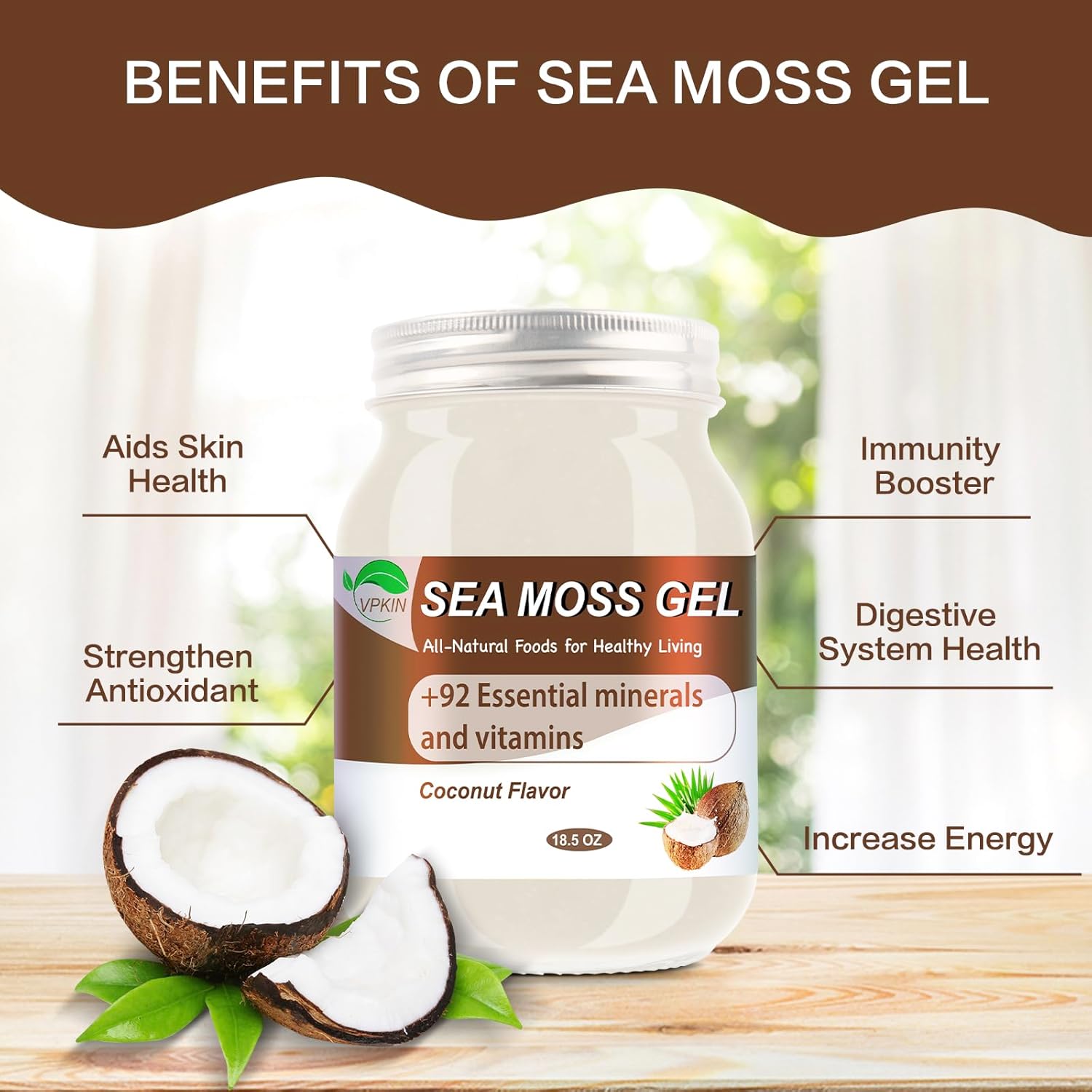 Irish Sea Moss Gel Seamoss,Gold Sea Moss Gel Organic Wildcrafted,Sea Moss Supplements with Gut Health(Coconut,18.5OZ)