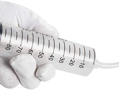 WIDE APPLICABILITY – 100CC large plastic syringe with attached 31.5″ long tube, ideal for injecting, draining fluid, oil, water. It’s great for Refilling and Measuring Wood Glue, motoring applications, Glues, Adhesives, Solvents, Light Oil, inks, lubricants, sealants, Measuring Your Nutrients In Hydroponics. It also can be used for oral administration of medicines and foods to pets, babies, children, adults and elderly