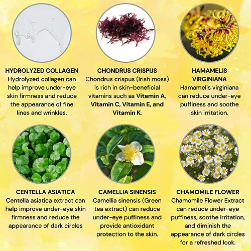 FORMULATED TO LOOK YOUTHFUL: Our masks are formulated to suit any skin type. Our patches contain ingredients that calm and soothe skin for a brighter and ILLUMINATED look. Chondrus crispus (irish sea moss), witch hazel, and collagen are all BENEFICIAL for the under-eye. Look more youthful and glow with our 24k gold under eye patches.