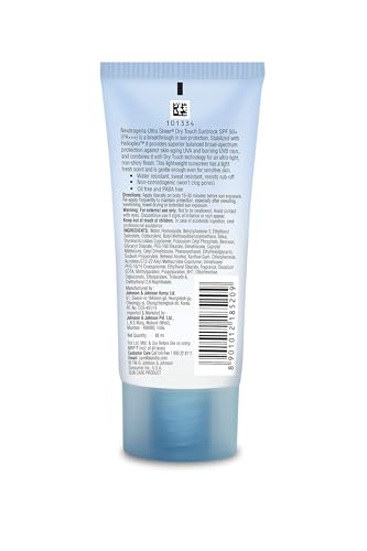 Get powerful sun protection without the heavy finish with Neutrogena Ultra Sheer Dry-Touch Face and Body Sunscreen. This lightweight Broad Spectrum SPF 55 sunscreen lotion for sunburn protection with Dry-Touch technology absorbs fast for a clean feel and non-shiny finish. This sunscreen is formulated with Helioplex Technology, which offers superior broad spectrum protection from skin-aging UVA rays and skin-burning UVB rays. The oxybenzone free sunscreen is fast-absorbing, lightweight and water-resistant up to 80 minutes. The non-greasy sunscreen lotion formula is non-comedogenic and PABA-free leaving a clean feel on skin. Protect yourself as you get your daily dose of sunshine. Apply the dry touch sunscreen for face and body 15 minutes before sun exposure and reapply after 80 minutes swimming or sweating, after towel drying, and at least every two hours.