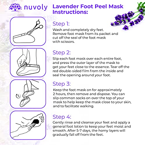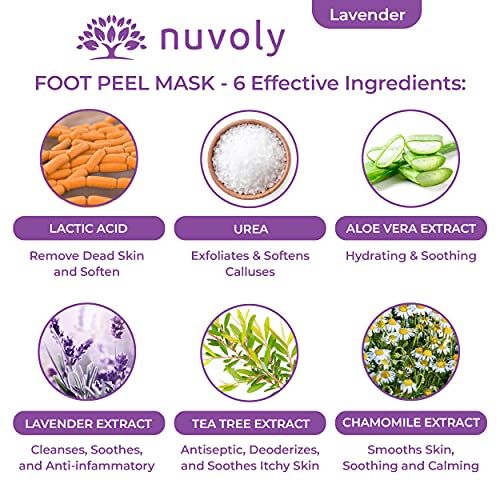 Nuvoly Foot Peel Masks – Foot Mask To Remove Dead Skin Cells and Restore Baby Soft Feet – Formulated with Aloe Vera Gel and Lavender for both Women and Men (2 Pack)