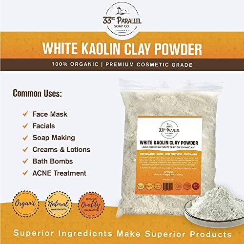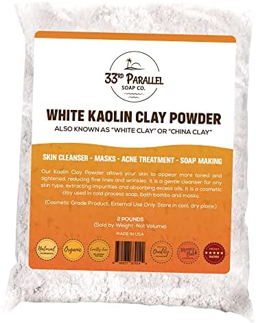 🧼 PREMIUM COSMETIC GRADE & SATISFACTION GUARANTEED: 33rd Parallel Soap Co supplies bulk White Kaolin Clay Powder to premium cosmetic brands and we stand behind the purity and quality of every product we sell. Enjoy our high quality RESEALABLE PACKAGING!