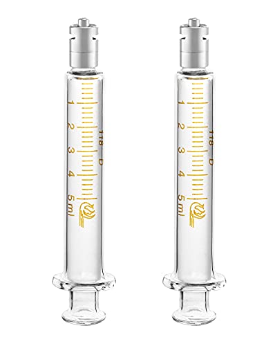 QWORK 2 Pack Luer Lock Reusable Glass Syringe with No Needle, 5ml