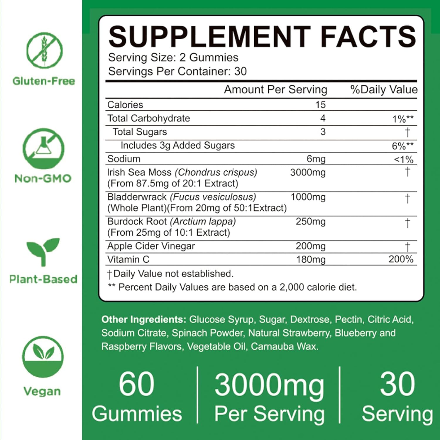 Vegan Friendly Suitable for Adults & Kids ▶ Our Sea Moss Gummies are pectin-based which is vegan & vegetarian friendly. Free of starch, soy, yeast, wheat, egg, artificial color, flavor, & preservatives.