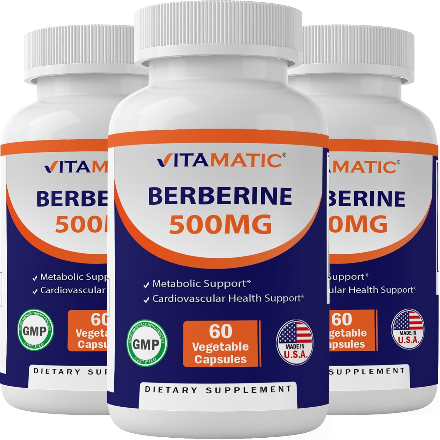 Vitamatic Berberine Supplement 500mg – 60 Vegetable Capsules – Made in The USA – Gluten Free – Non-GMO (3 Bottles)